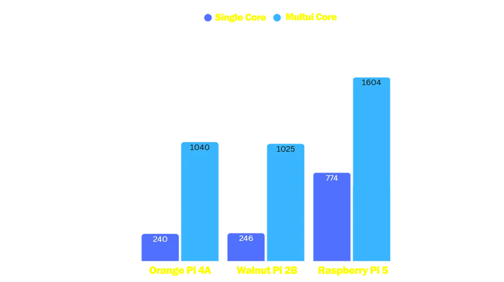 However, Walnut Pi 2B loses to Raspberry Pi 5 quite significantly, especially in single-core performance.