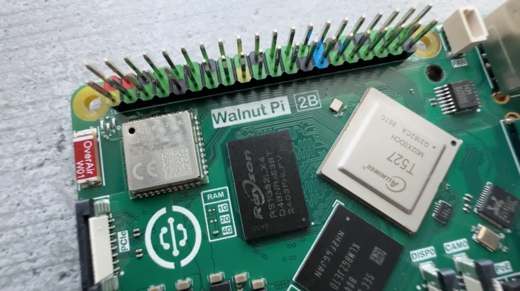 In its maximum configuration, Walnut Pi 2B has 4 GB of LPDDR4 RAM, while Raspberry Pi 5 offers up to 16 GB, of course for a much higher price.